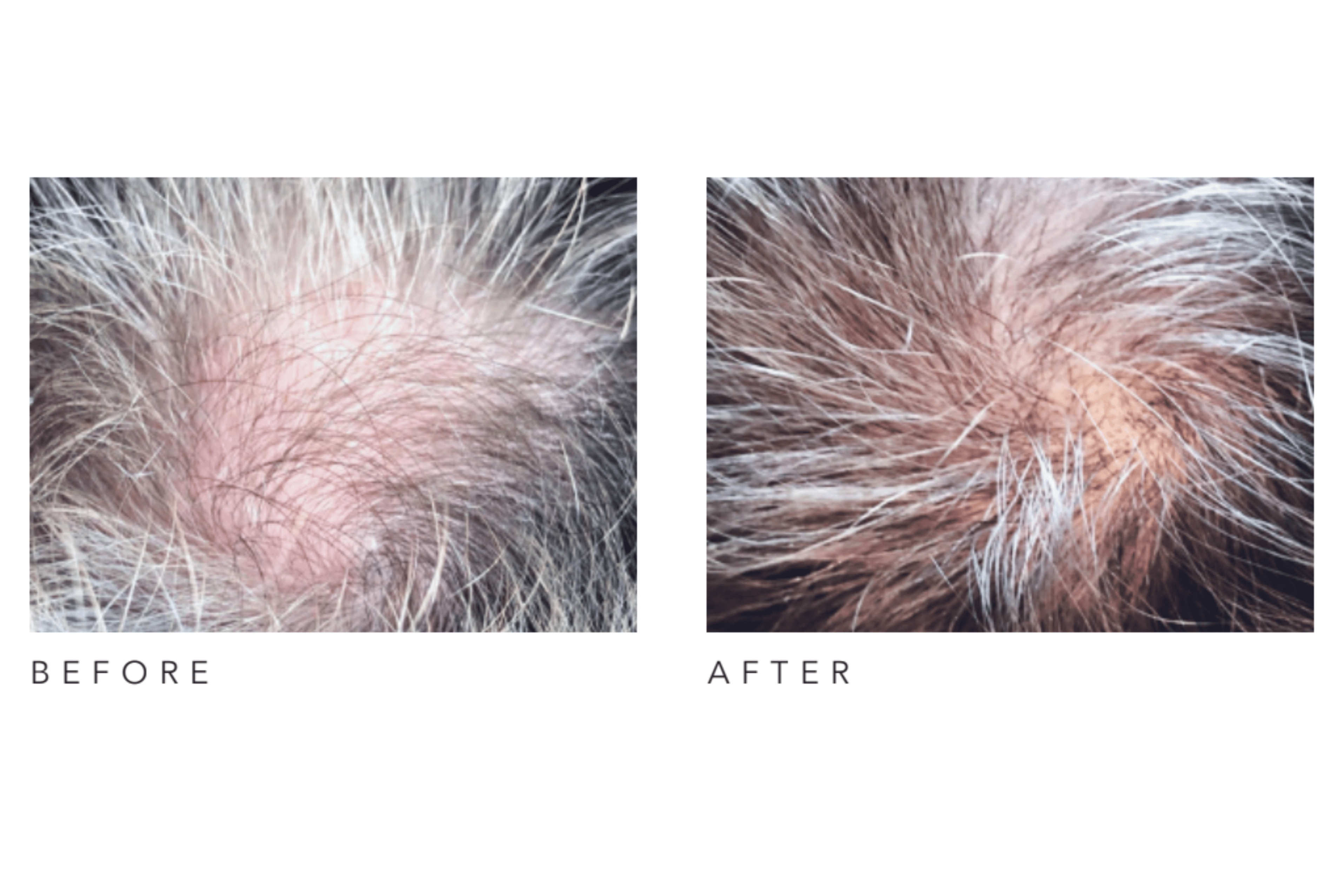 The application of Hair Serum comes with a handheld dermal needling device to enhance product penetration and a thickening brush to gently stimulate follicles.