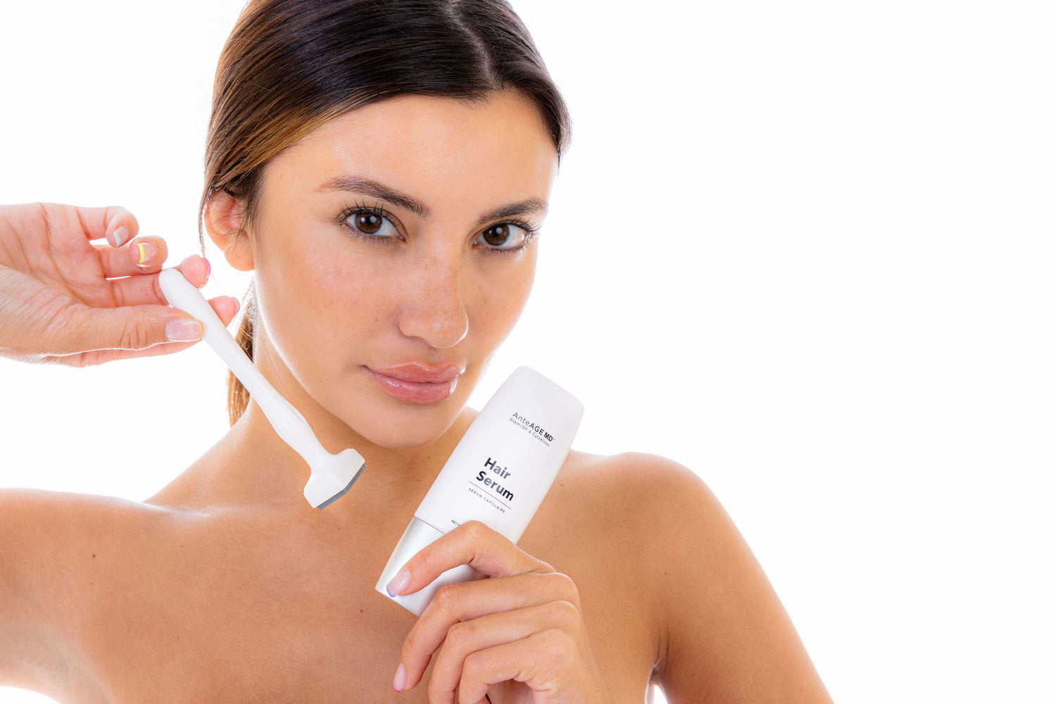 The AnteAGE MD Home Hair System simplifies hair regrowth treatments at home by combining all the tools needed to stimulate hair follicles and promote natural, healthy hair growth, without surgery or hormonal side effects.